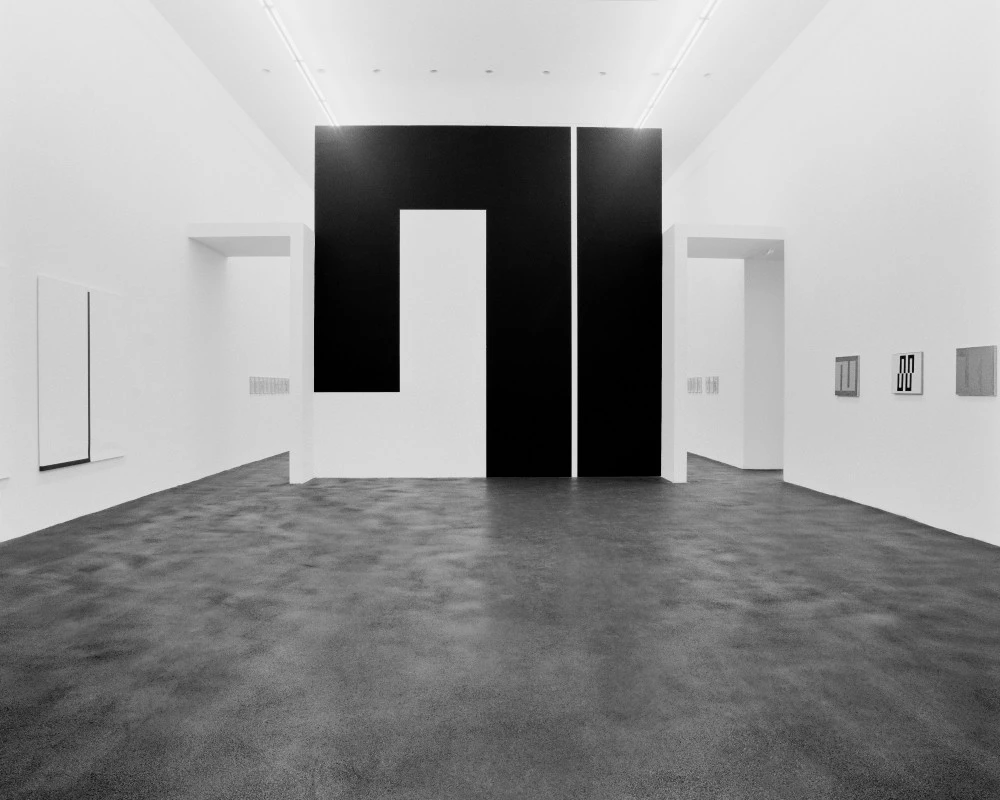 Vue de l’exposition « Ainsi de suite 1 », Crac Occitanie à Sète, 1997. Julije Knifer, "Méandre", 1997, wall painting, 590 x 580 cm. Production Crac Languedoc-Roussillon. Photo : François Lagarde.