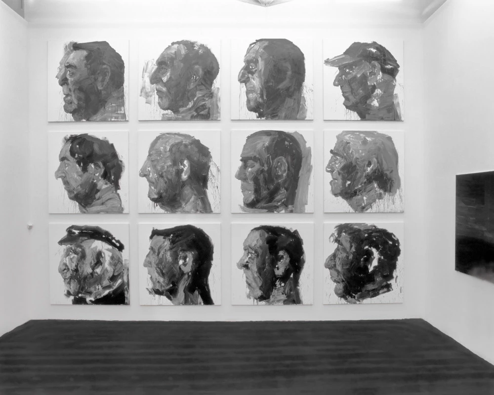 Vue de l’exposition « Ainsi de suite 1 », Crac Occitanie à Sète, 1997. Yan Pei-Ming, "Portraits de pêcheurs sétois", 1997, série de 12 portraits, huile sur toile, 200 x 200 cm. Production Crac Languedoc-Roussillon. Photo : François Lagarde.