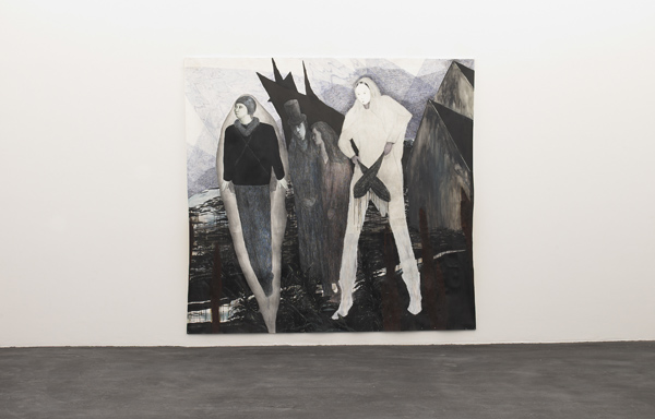 Never forget the warriors (N’oublie pas les guerriers), 2008, techniques mixtes, 272x150 cm. Courtesy The Breeder.