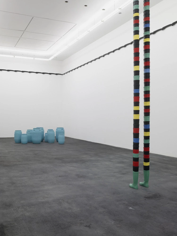 Vue de l’exposition « Aspirant l’air de la mer », Étienne Bossut, Crac Occitanie à Sète, 2009-2010. « Colonnes », 2009, moulage en polyester, production Crac Occitanie. Photo : Marc Domage.