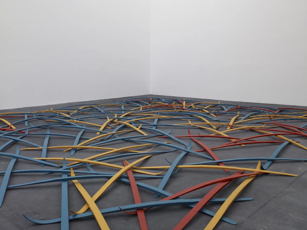 Vue de l’exposition « Aspirant l’air de la mer », Étienne Bossut, Crac Occitanie à Sète, 2009-2010. « 101 skis », 1995, moulage en polyester, Collection FRAC Bourgogne. Photo : Marc Domage.