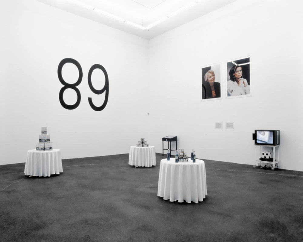 Vue de l’exposition « Cet été là… exposition de variété », Crac Occitanie à Sète, 1998. Au sol, de gauche à droite : Martine Aballea, "Sel de Tempête", 1997 ; "Bonbons Marinés", 1997 ; "Bouillon du lac", 1997 ; "Gâteau Magnétique", 1997 ; Fabrice Hyber, "POF n°65 : ballon carré", 1998. Au mur : Olga Kisseleva, "Am I different"", 1998. Photo : Pierre Schwartz.