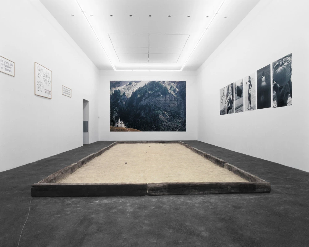 Vue de l’exposition « Cet été là… exposition de variété », Crac Occitanie à Sète, 1998. Au sol : Dorothée Golz, "Hohlwelt", 1996. Au mur : Jean-Luc Moulène, "Sans titre", 1998. Photo : Pierre Schwartz.