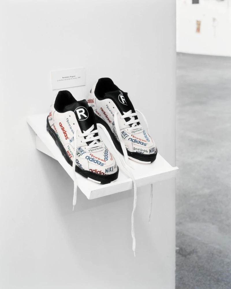 Vue de l’exposition « Cet été là… exposition de variété », Crac Occitanie à Sète, 1998. Au sol en arrière plan : Delphine Coindet, 1998. Au sol au premier plan : Maurizio Cattelan, "Sans titre", 1997. Au mur : Wim Delvoye, "De retour à 14h au café du coin merci", 1998, Production Crac Languedos-Roussillon. Photo : Pierre Schwartz.