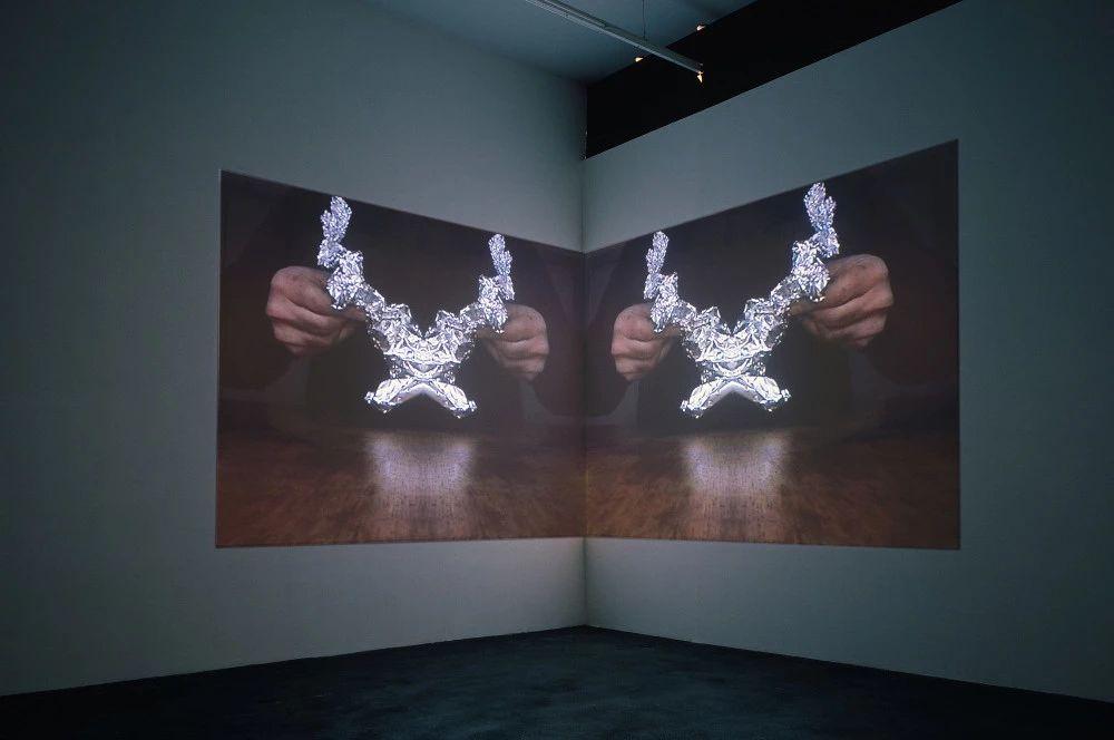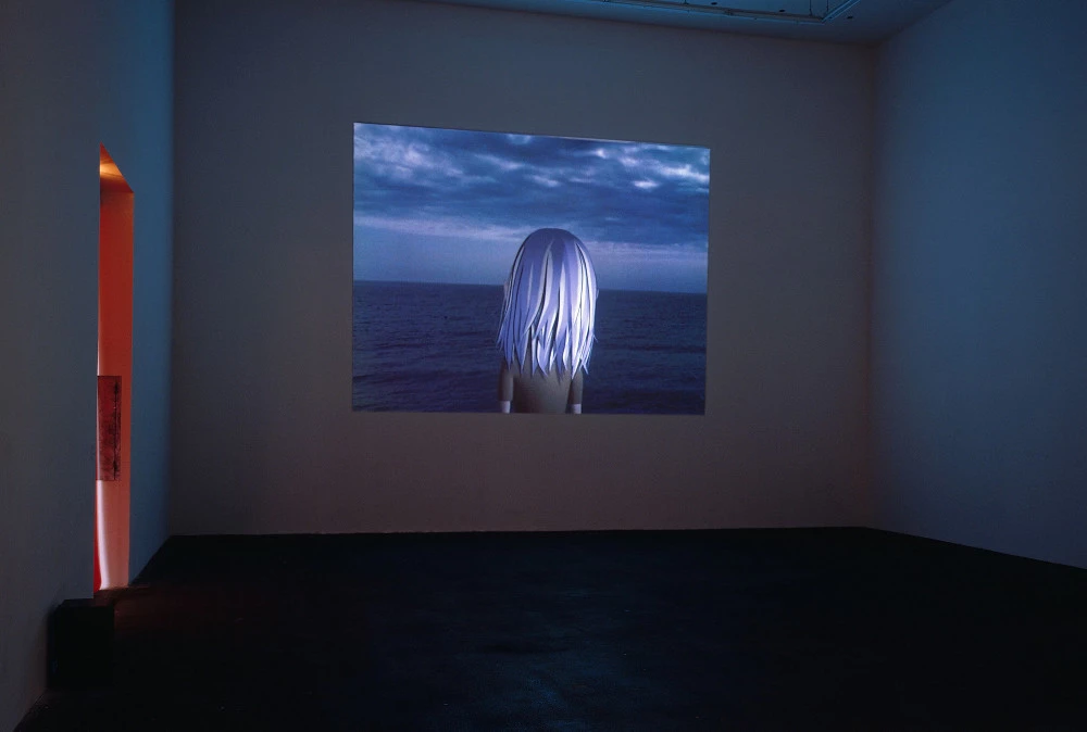 Vue de l’exposition « Coconutour », Crac Languedoc-Roussillon, Sète, 2003. Michel François, « Alu », 2002, vidéo couleur en boucle, courtesy Galerie Jennifer Flay, Paris. Production Crac Languedoc-Roussillon. Photo : André Morin.