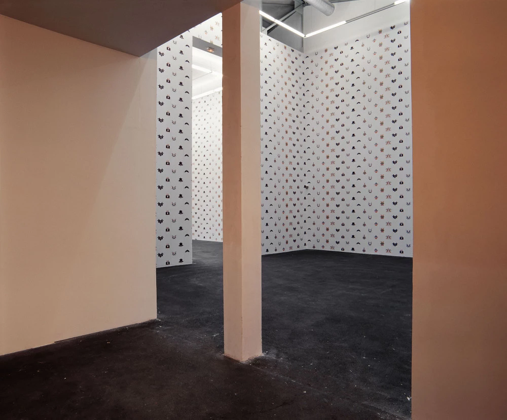 Vue de l’exposition « Dialogue : François Curlet – Didier Marcel », Crac Languedoc-Roussillon, Sète, 2000-2001. François Curlet, « Jachère », 2000, papier peint. Production Crac Languedoc-Roussillon et Association Nouvelle Vague, Sète. Photo : François Lagarde.