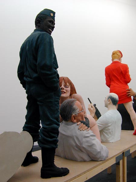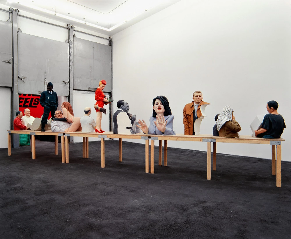 Ensemble de 11 sculptures en plâtre qui se présente comme le résultat d’une revue de presse internationale, apparemment sans dénominateur commun entre les évènements évoqués si ce n’est que tous les personnages représentés, célèbres ou anonymes, ont "fait" l’actualité. Les sculptures, toutes placées à même hauteur sur une longue table, suggèrent l’expression d’un nivellement de l’information.