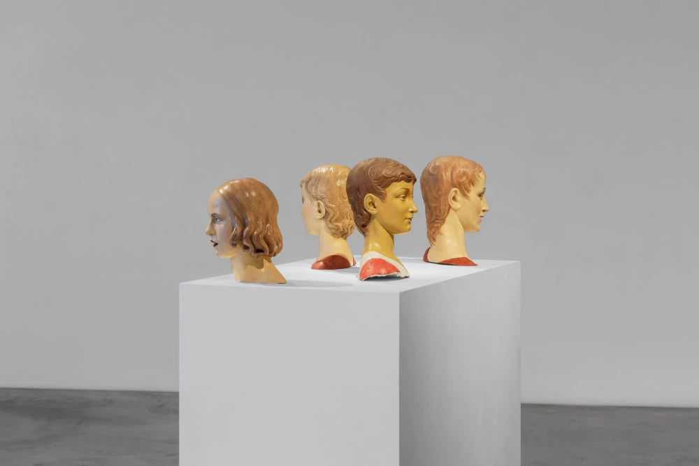 Lucy McKenzie, "Anonymous Youth ; Donatello John the Baptist 1.1 ; Donatello John the Baptist 1.2 ; Donatello John the Baptist 2", 2019. Huile sur plastique en fibre de verre (sauf "Donatello John the Baptist 1.2", huile sur plâtre), dimensions variables. Courtesy de l’artiste et de la Galerie Buchholz, Cologne. Photo : Useful Art Services.