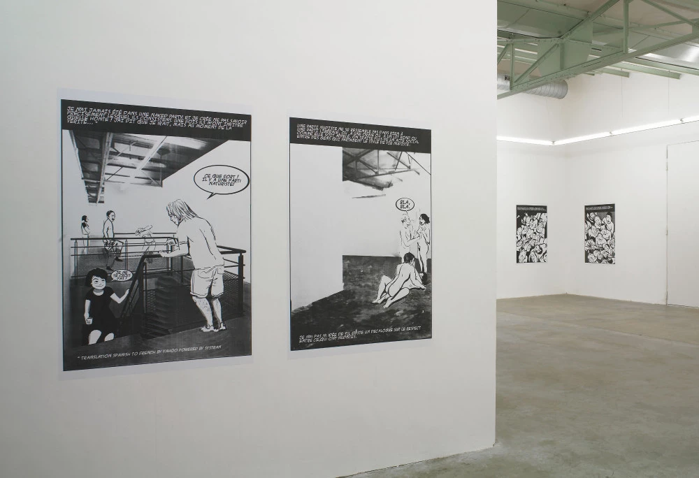 Francesc Ruiz a dessiné au trait noir des nus in situ (mis en situation dans le lieu) sur des images basse définition des espaces d’exposition du centre d’art, prises sur Internet. Le visiteur évolue à l’intérieur de cette bande dessinée démesurée (une vignette par affiche). Il a l’impression d’être habité par l’expérience licencieuse qu’il découvre. Sa confusion grandit lorsqu’il établit le lien avec l’acte de socialisation habituel en ces murs : le vernissage de l’exposition.