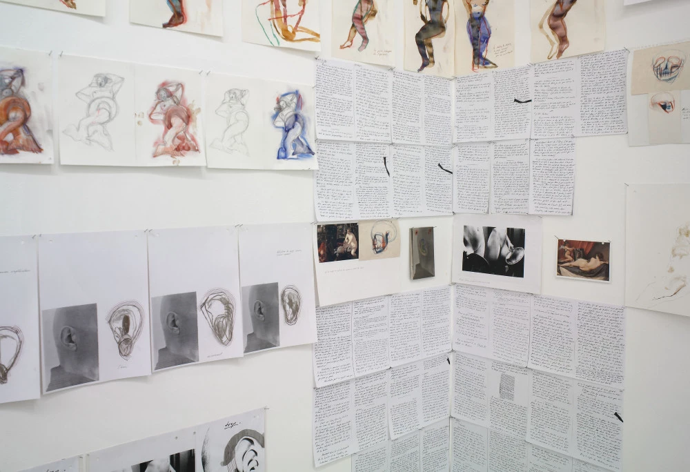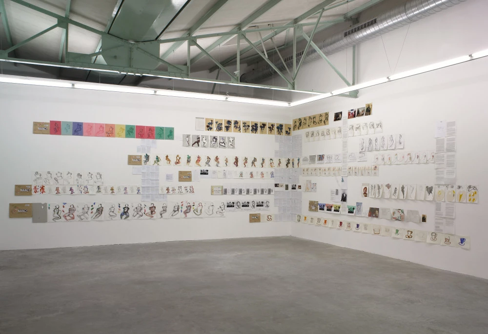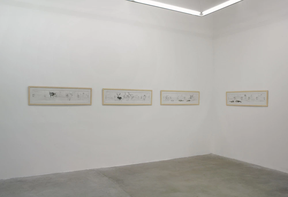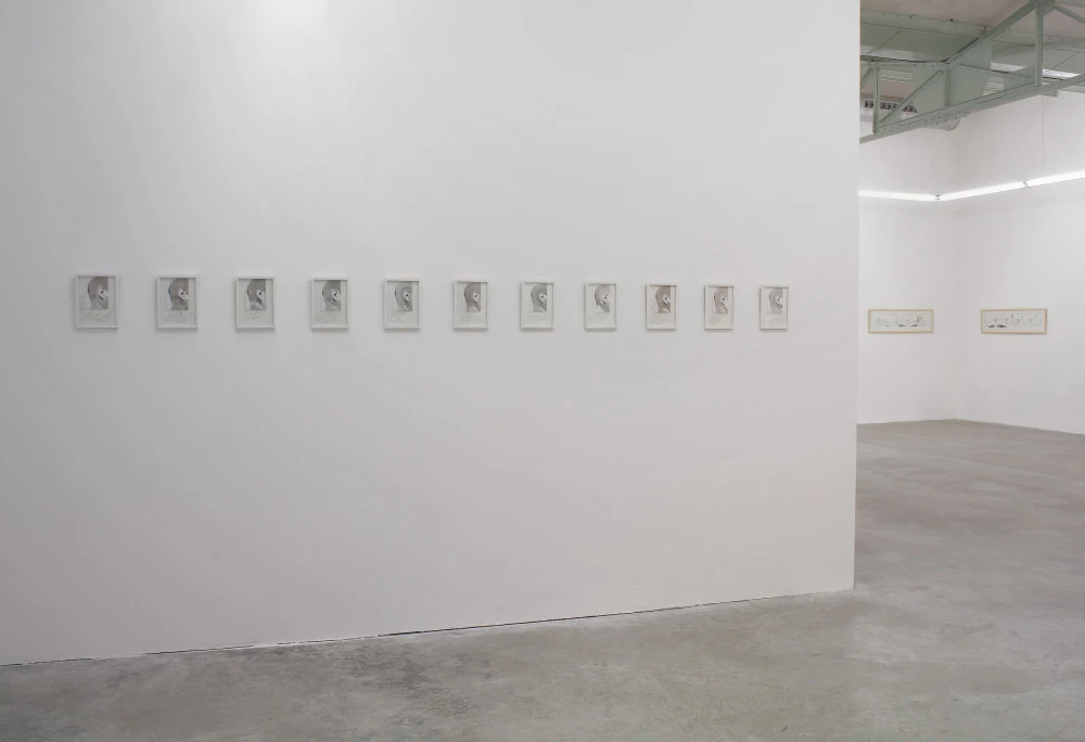 Vue de l’exposition « Trait d’union II – 6ème séquence », François Martin et Jean-Luc Nancy, 2006, Crac Languedoc-Roussillon, Sète. Sans titre, 2004, 11 dessins pour la revue Spirale (Montréal). Photo : André Morin.