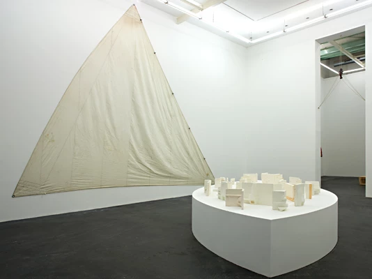 Exposition monographique "Tu m’accompagneras à la plage ? " @ CRAC OCCITANIE à Sète - 22.06 > 29.09.2019 - Valentine Schlegel - Salle B Maquettes en plâtre - Voile prêtée par Les Voiles Latines