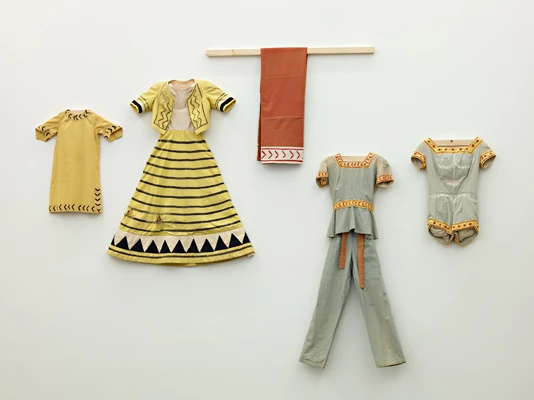 Exposition monographique "Tu m’accompagneras à la plage ? " @ CRAC OCCITANIE à Sète - 22.06 > 29.09.2019 - Valentine Schlegel - Salle A Costumes et oriflammes ©Fonds Jean Vilar/Association